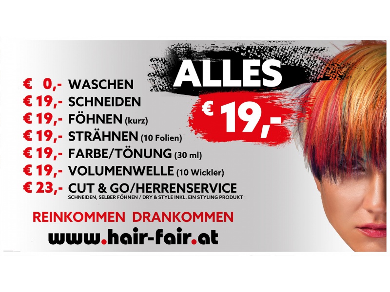 hair fair ist ein Konzept für kurzentschlossene Kunden, die in knapper Zeit und für wenig Geld gute und rasche Friseurdienstleistungen mit klaren transparenten Preisen wünschen. hair fair steht für top Frisuren zu fairen Preisen.